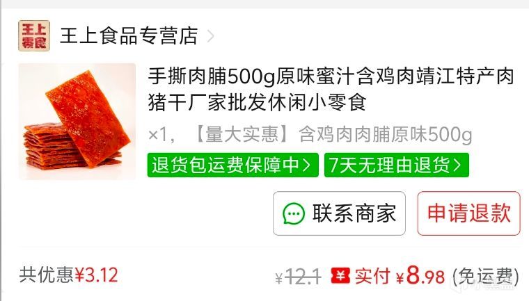 3.手撕肉脯(9元500克) 不是纯猪肉,有鸡肉和猪肉,味道属于还行的级别没有纯猪肉脯好吃但是价格相对便宜,所以给到顶级