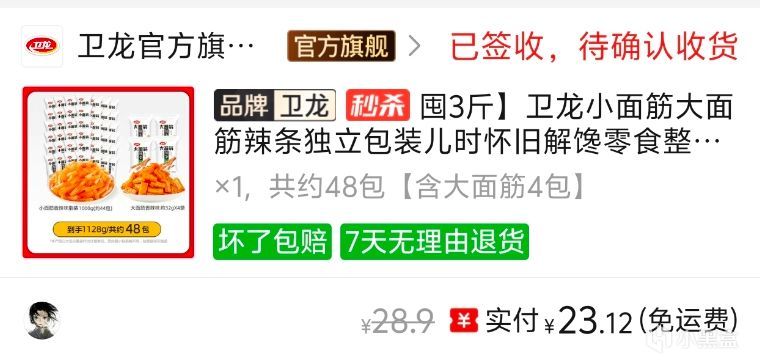 4.卫龙小面筋(23元48包含四包大面筋) 这个真是从小吃到大的,大人小孩都爱吃,夯