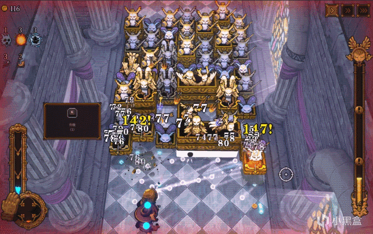 如果说当中有什么门道,可能就是要像打砖块一样,尽可能地调整发射角度让弹珠在砖块之间不断弹射来提高攻击效率——仅此而已。