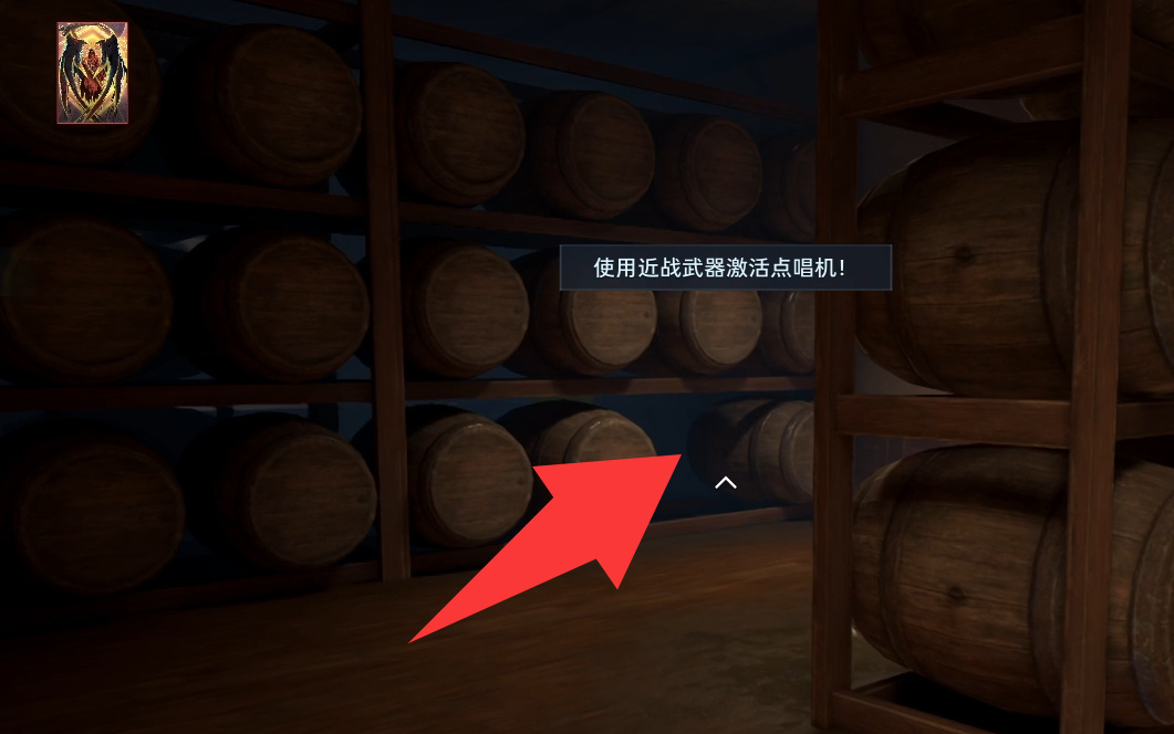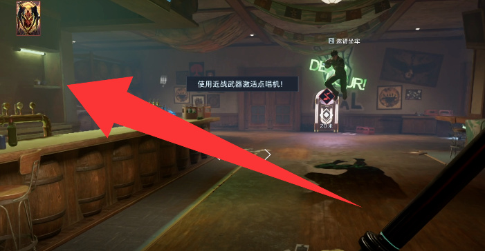 后面点唱机守点处,往左侧酒桶里走有个黄金怪。