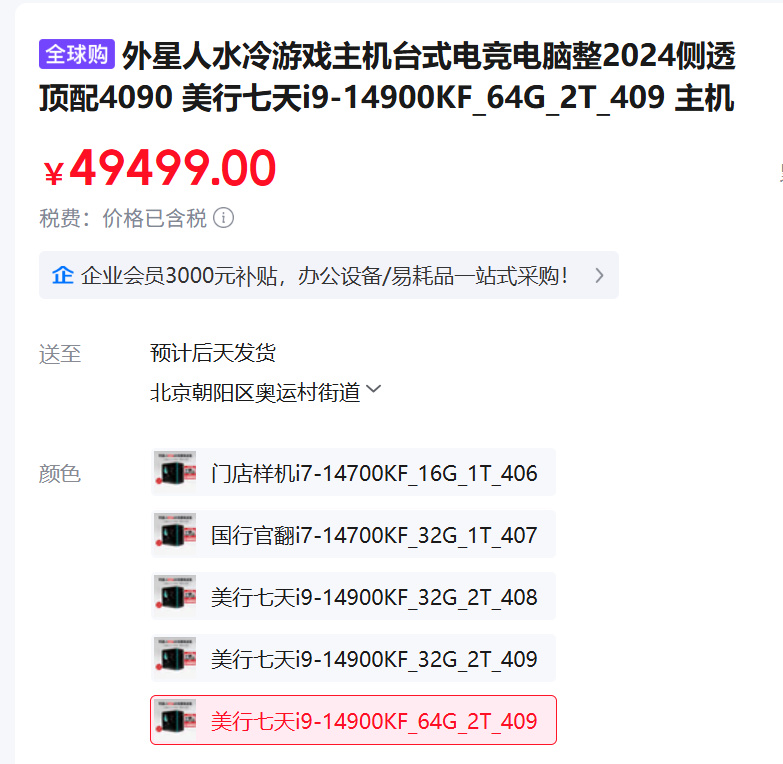现在同样的配置得要49499才能买到。当然也可能有一点内存涨价的原因,但整体上看肯定是省了1W+的。