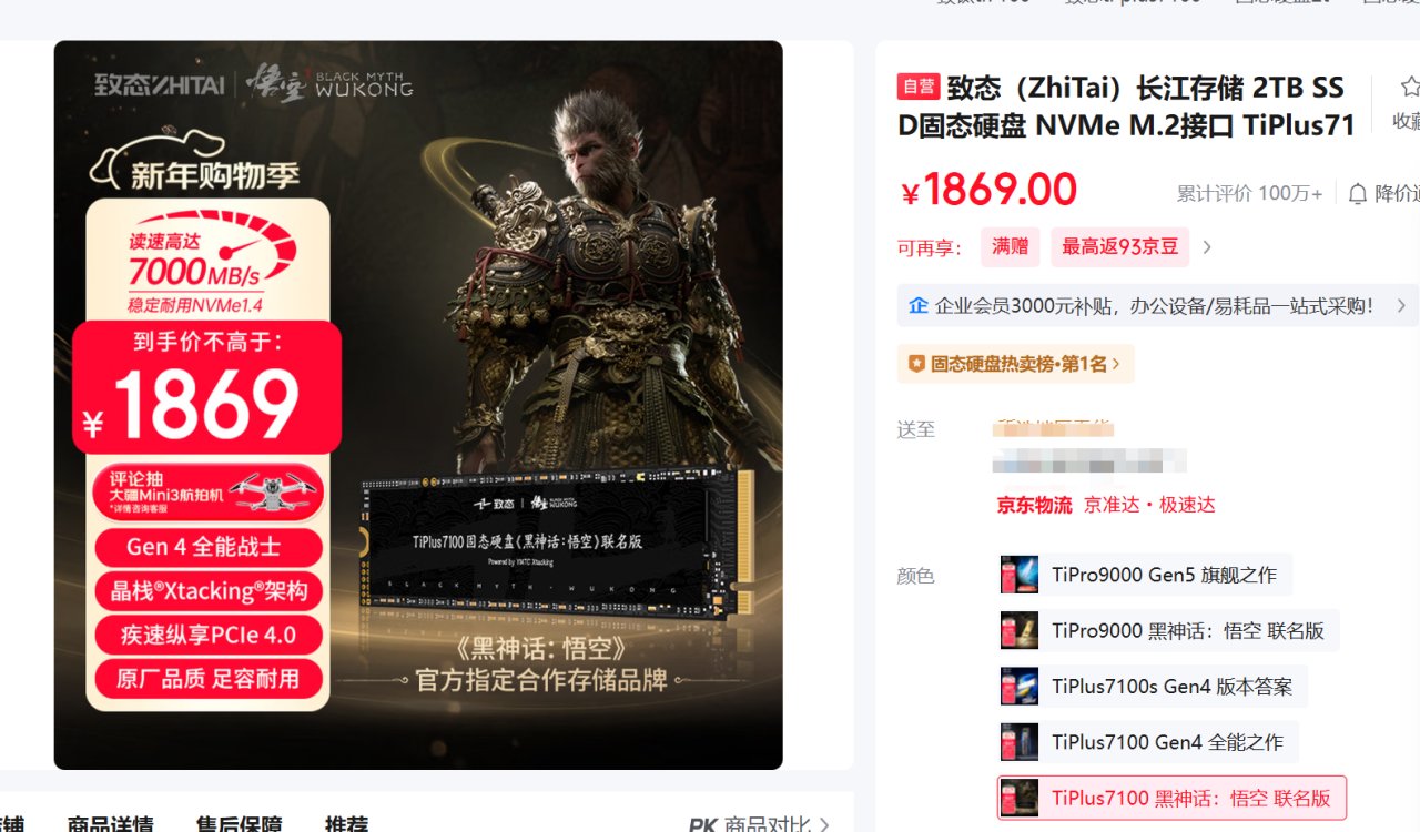 因为原装的2T盘不够用,电脑还有一个nvme的盘位,正好致态当时出了猴子的联名固态,果断购入一只。后来还买了第二只送给朋友了。价格都是959。后来双十一做活动一度低到900以内。