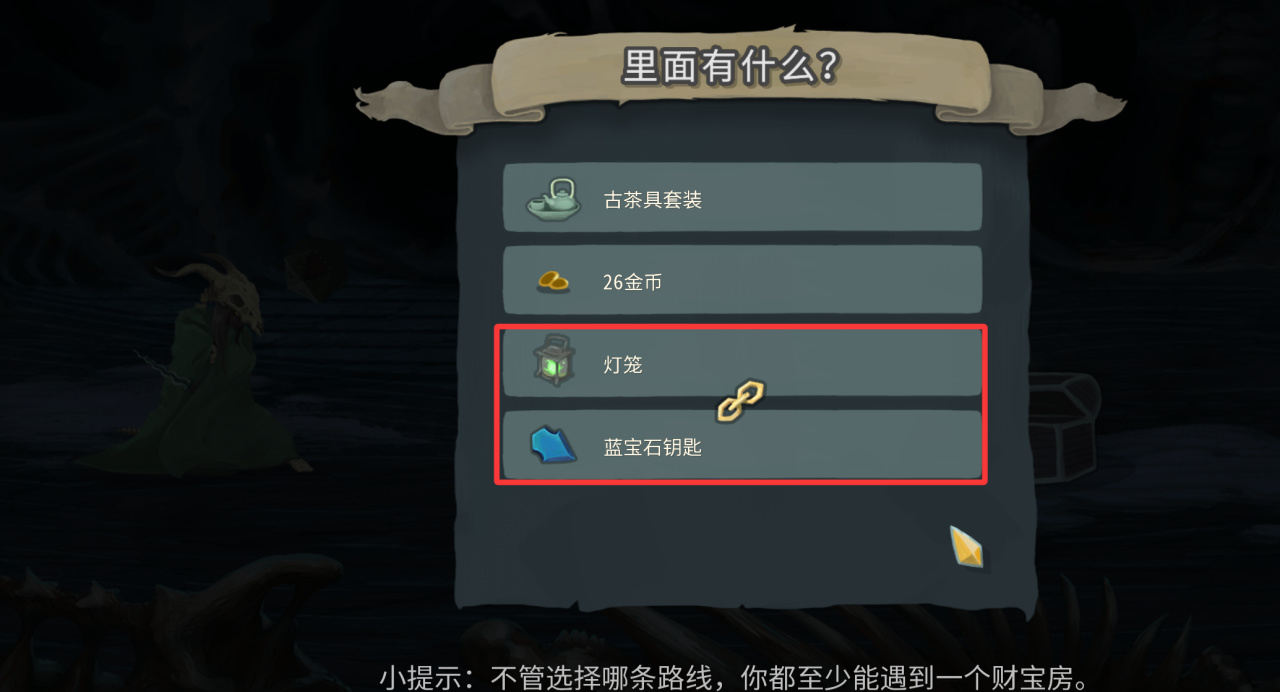 蓝宝石钥匙:打开任意宝箱时,放弃拾取宝箱内的遗物,即可获得,会有一个链条连接,只能二选一。