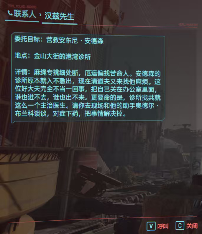 沉默:漢茲先生對此結果表示不滿,任務判定爲部分完成。無法解鎖診所的任何後續功能。