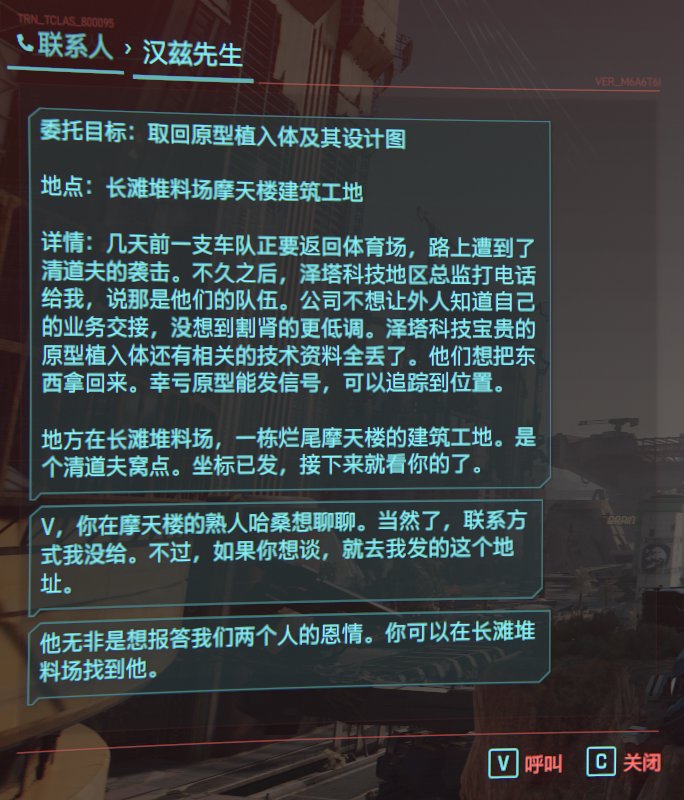 任務流程:漢茲先生委託,前往長灘堆料場清道夫窩點,取回澤塔科技被劫的眼部原型植入體與設計圖,關鍵是摩天樓內救人、密碼獲取及與工程師哈桑的最終抉擇,影響獎勵、後續劇情與哈桑命運。