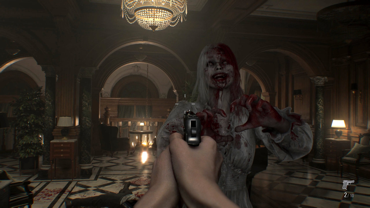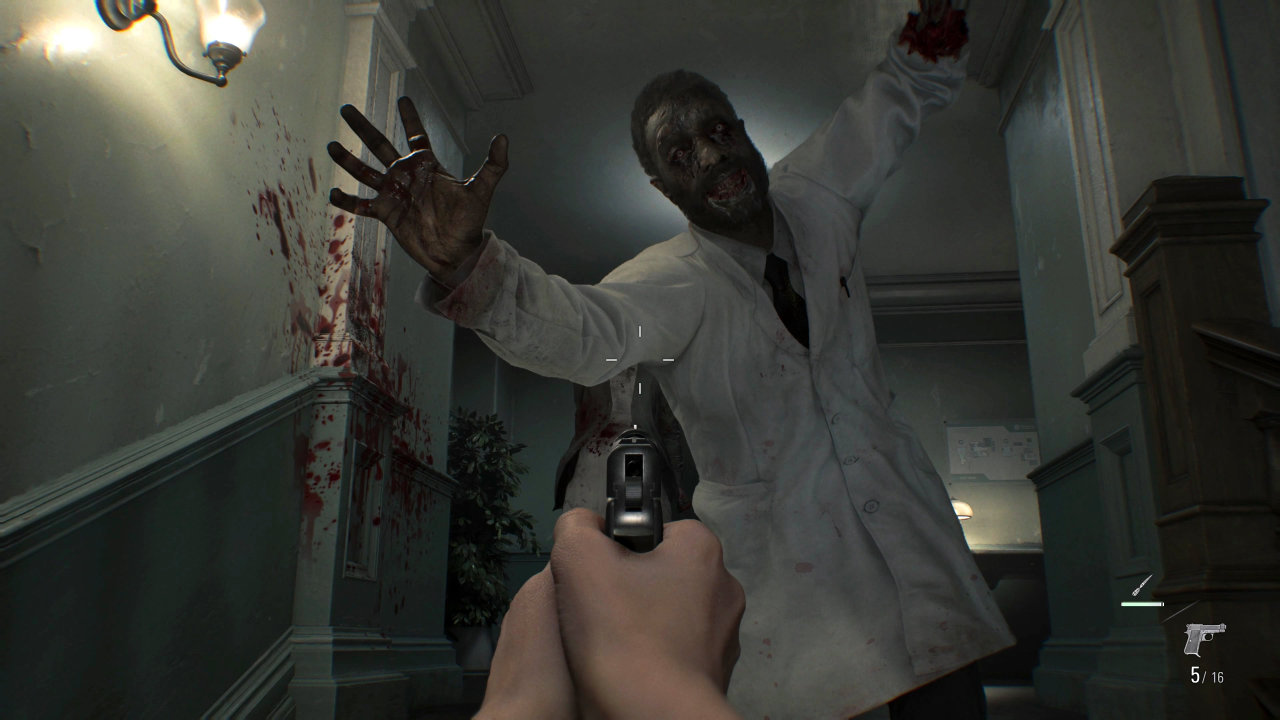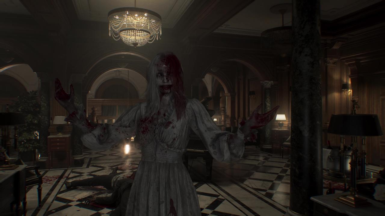 格蕾丝代表《生化危机》的经典生存恐怖根源。采用第一人称视角,玩法沿自《生化危机7》与早期作品。玩家需在类似“罗兹希尔医院”的半开放场景中,以极有限的资源进行探索、解谜与潜行求生。游戏过程中充满资源管理的压力与未知的恐惧,玩家需要反复在打字机存档,体验缓慢而紧张的推进感。