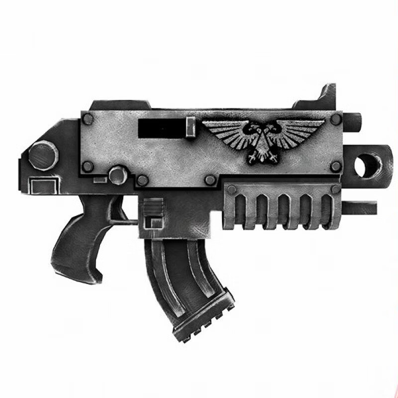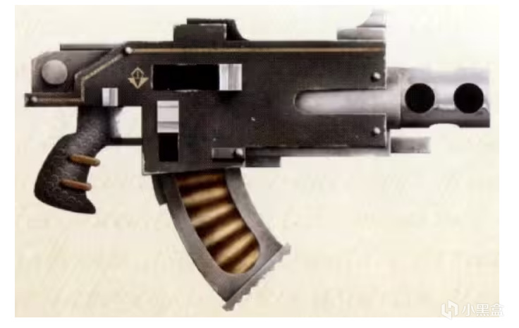 定制弹匣供弹,基因锁握把,结构强化,适配禁军超人体格,维护便捷,泰拉标准化工艺打造,可靠性极强。