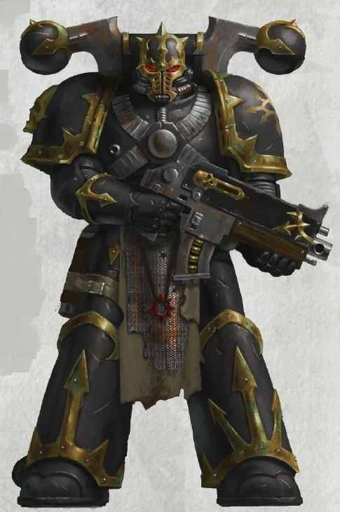 大远征后期大规模量产的主力型号,产量巨大,与MK V「异端」(Heresy)型和MK VI「隼」(Corvus)型动力甲配套。