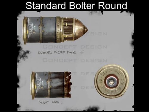 与MK II「远征」(Crusade)型动力甲紧密配套,是大远征初期最具代表性的爆弹枪,由火星铸造世界手工打造