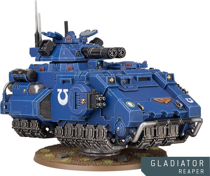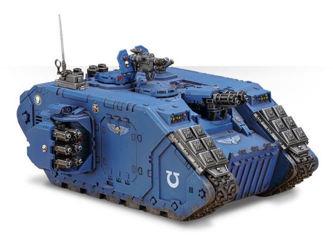 主要用于近距离反步兵作战,能够对敌方步兵集群形成密集的火力压制,顶部枢轴安装的暴风爆弹枪可由乘员操作,进行 360 度全方位防御,阻止敌方步兵靠近。其发射的高速爆弹可以轻松穿透 8 英寸厚的塑钢板。