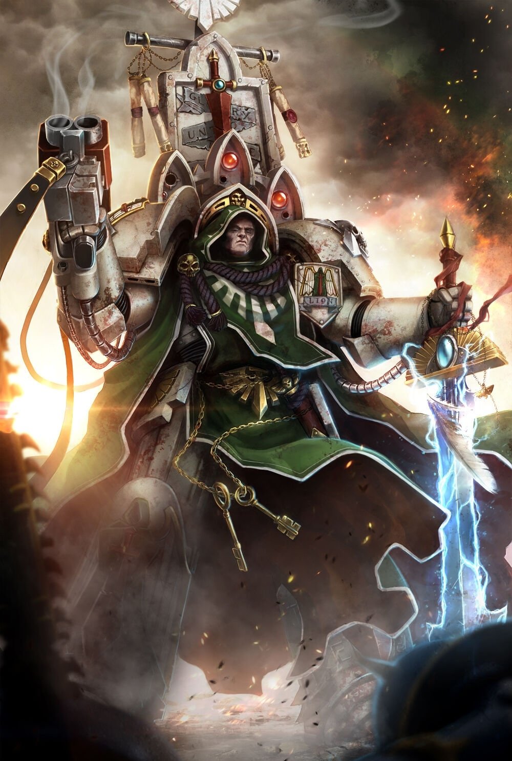 原铸星际战士牧师的专属武器,由火星机械教为原铸牧师量身打造,适配其在战场中 “精神领袖 + 近战补火” 的双重职责,是牧师区别于其他原铸星际战士(突击战士、智库)的核心身份标志。