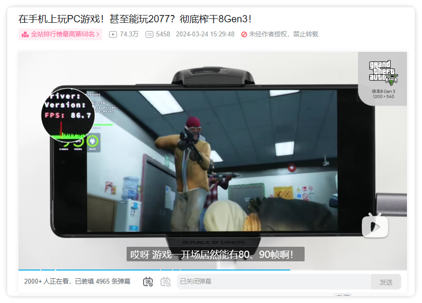 除了@极客湾分享的测试视频外,另外一位 UP 主 @東雪蓮OfficaI 也分享了不少安卓手机转译运行 PC 游戏的测试,感兴趣的也可以去看看。