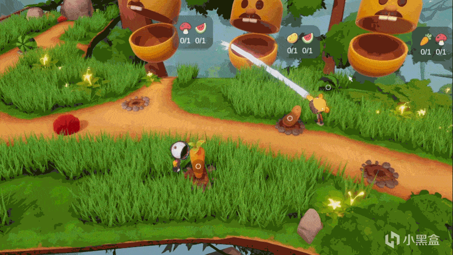 用那个熟悉的喷水装置对准它们,帮助苗圃里的植物生长。如果你玩过初代《知只大冒险》,这可能会让你想起熟悉的仙人掌机制。一旦水果、蘑菇或蔬菜长成,请根据标志将它们放入相应的容器中。恭喜你,新晋园丁!
