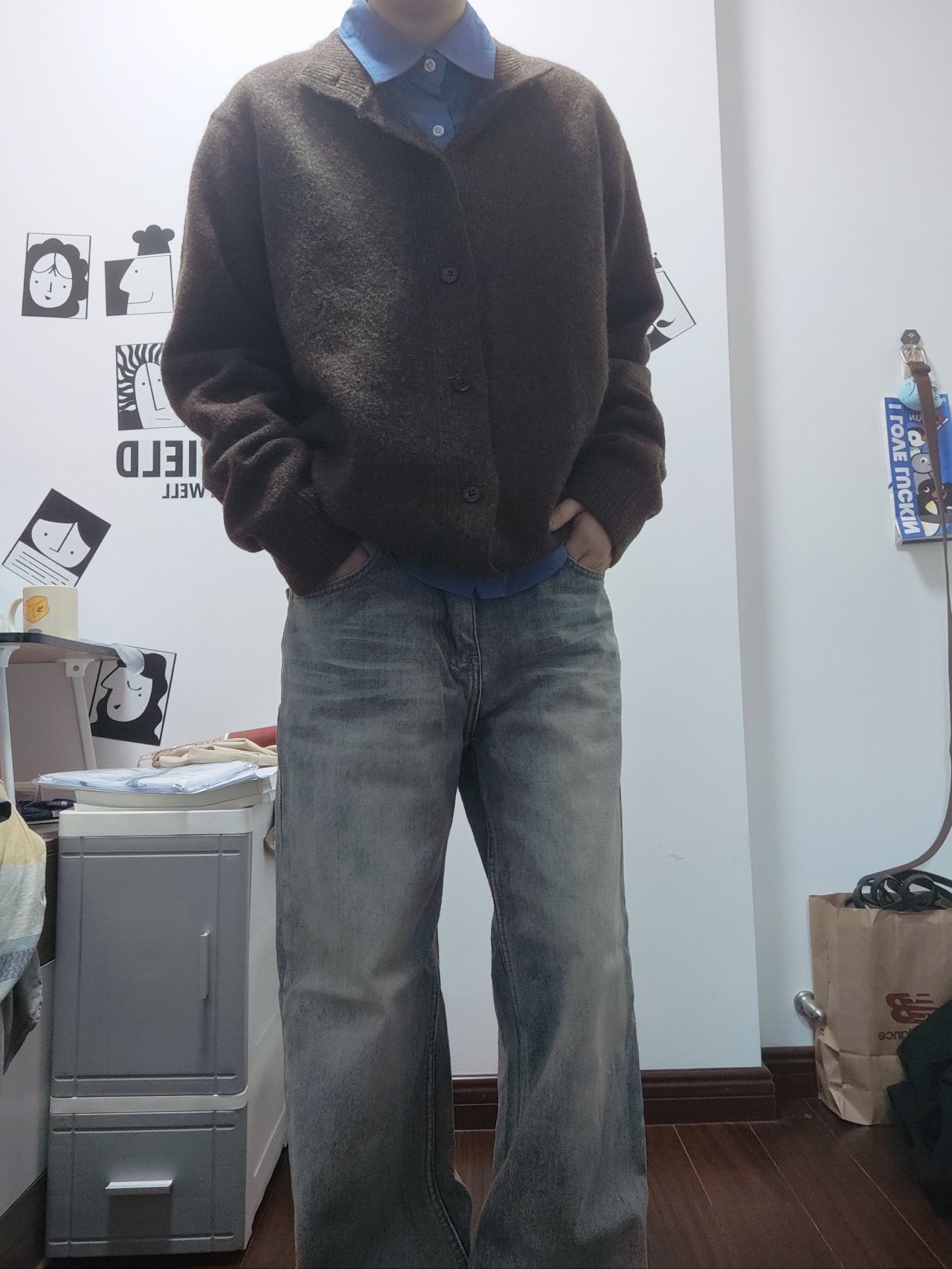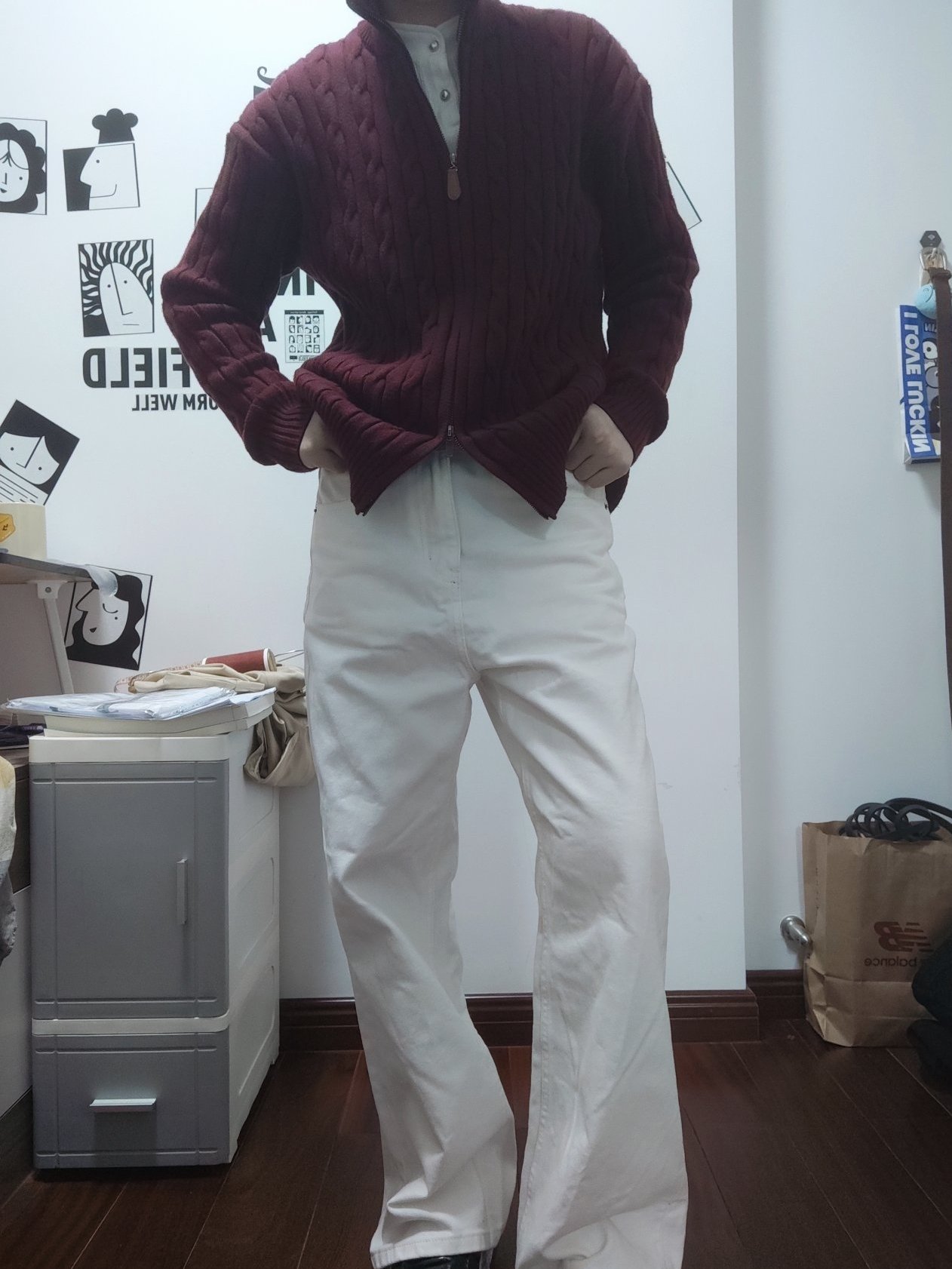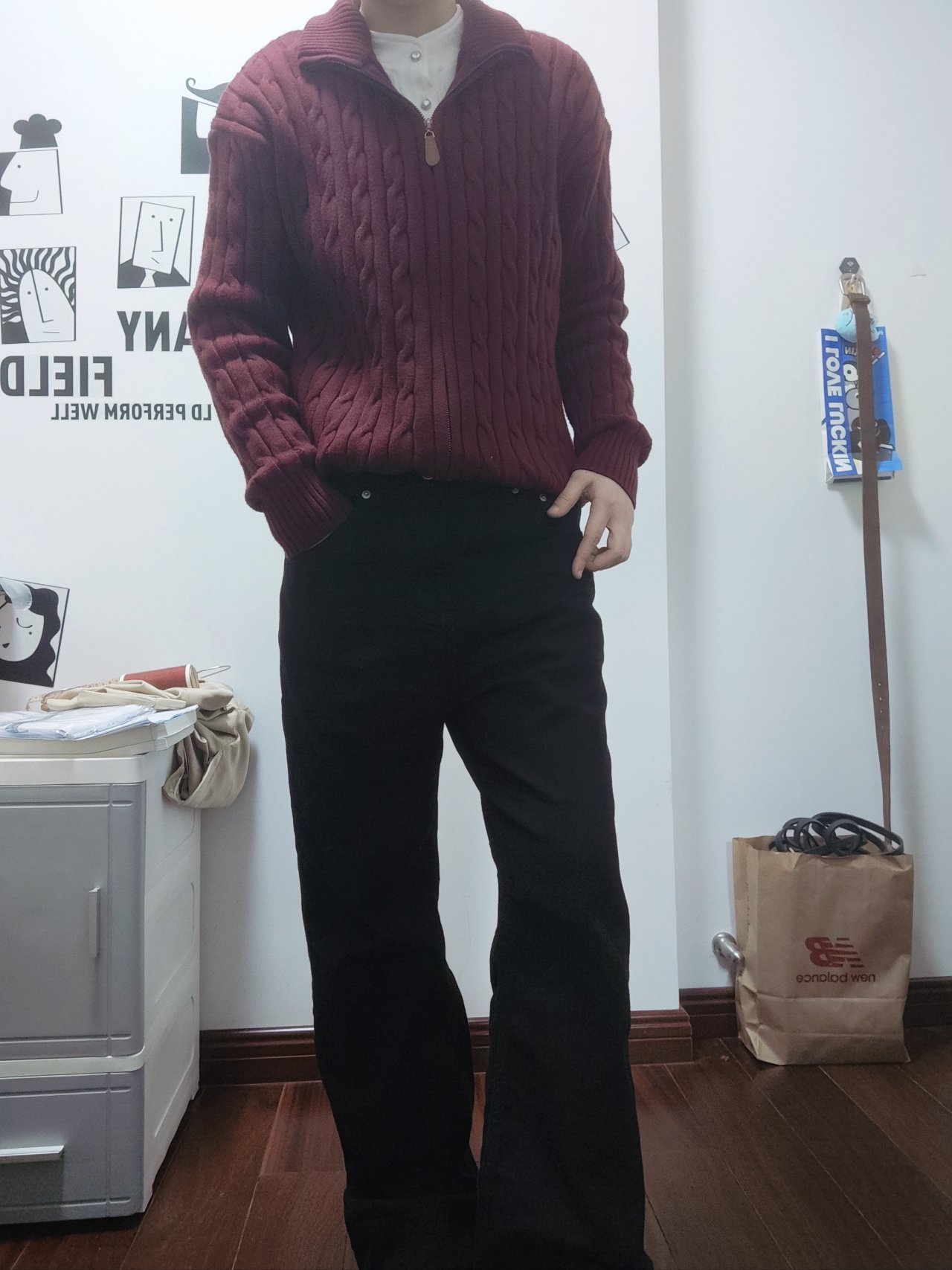 直筒版型 上身比较宽松舒适 垂感不错 面料比较厚手感丝滑 走线采用更结实的三本针工艺 口袋布不廉价手感好 有点粘毛 做工质量可以 有一点线头 性价比不错