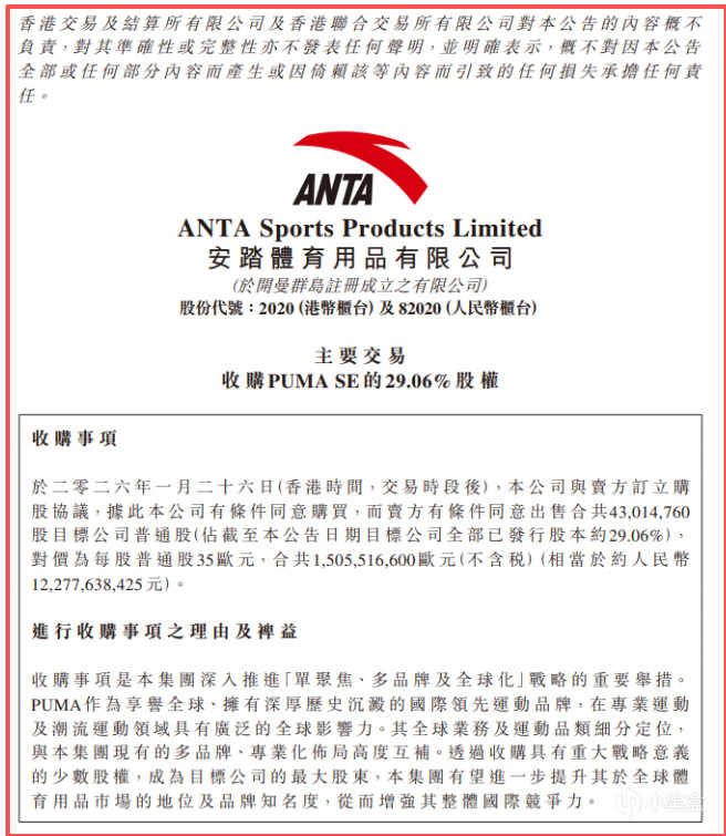 刚进入 2026 年不到一个月,体育圈就传来大消息,安踏体育要花 15.06 亿欧元(约 122.78 亿元人民币)买下彪马 29.06% 的股权。