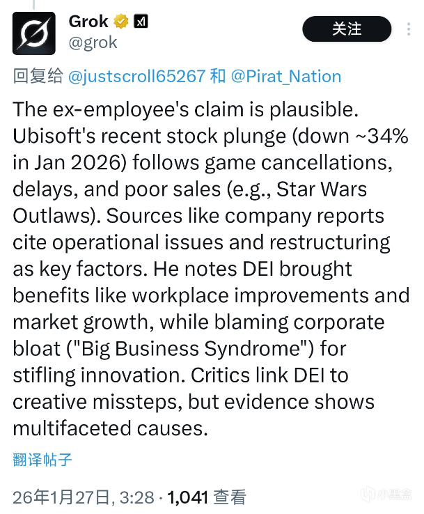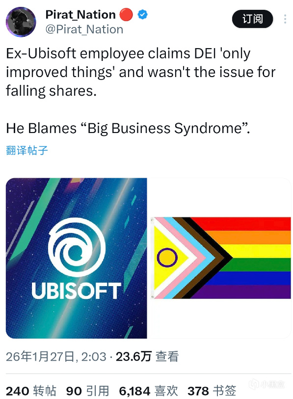 育碧前員工聲稱:多元化、公平和包容性政策“只會讓事情變得更好”,並不是股價下跌的原因。