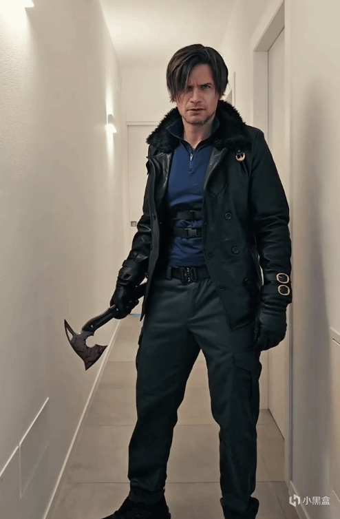 作为曾因但丁cos出圈的资深玩家,Sambuz此次将51岁里昂的特质拉满:额角皱纹、胡茬细节贴合游戏设定,标志性毛领皮夹克与战术装备质感在线,眼神中沉淀的沉稳气场,完美还原角色历经岁月后的坚毅内敛,既无刻意扮嫩感,又保留了里昂的核心帅气。