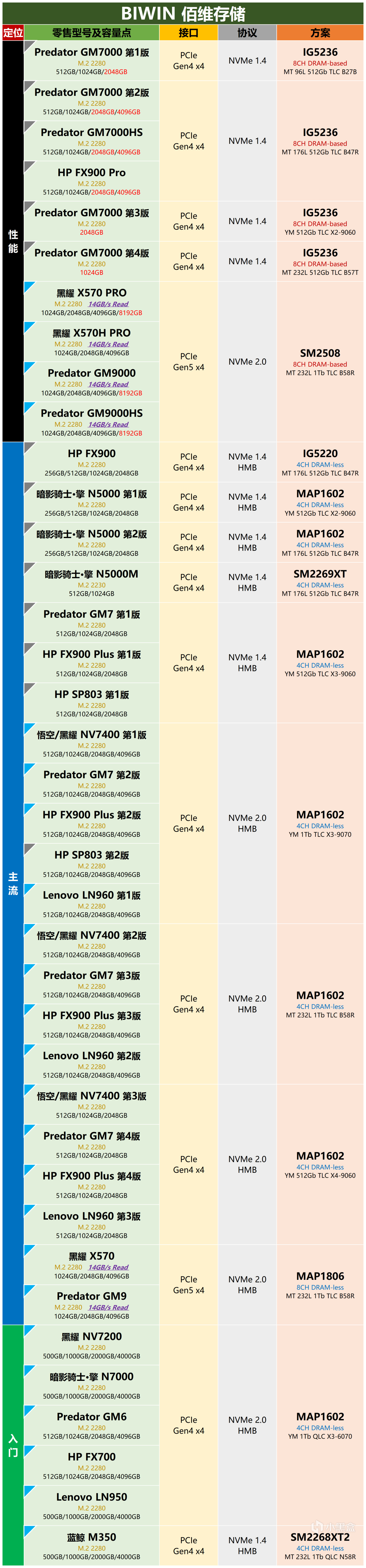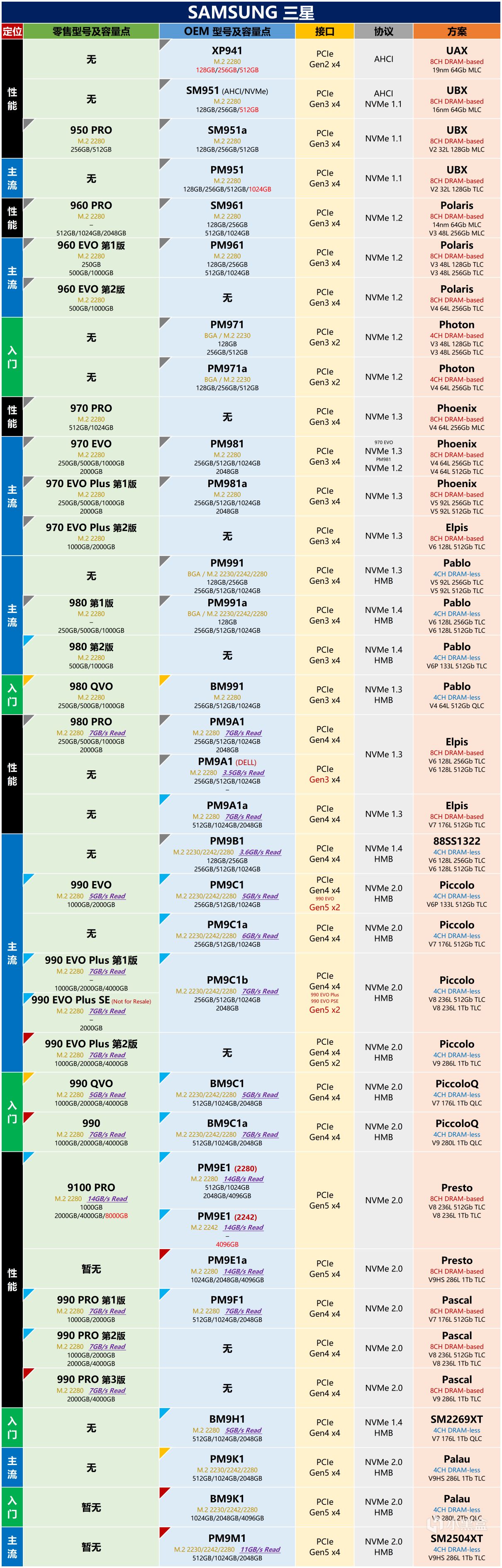 這份長期維護的詳細表格中收錄了各主流大廠SSD型號的硬件方案,同時包含了OEM和零售版型號之間的關係,作爲檢索工具非常實用,經作者授權,本頻道也會長期同步跟蹤轉載。