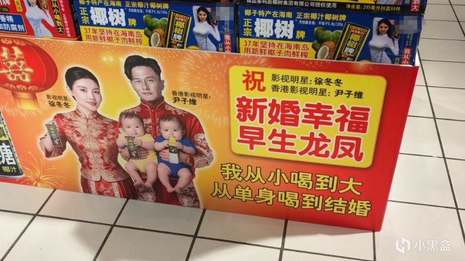 品牌特意出了婚禮定製款椰汁,瓶身印着倆人紅喜服合影,尹子維懷裏還抱着倆叼奶瓶的娃娃,妥妥的 “早生貴子” 祝福,這波操作被網友笑稱 “把代言人當家人寵”。