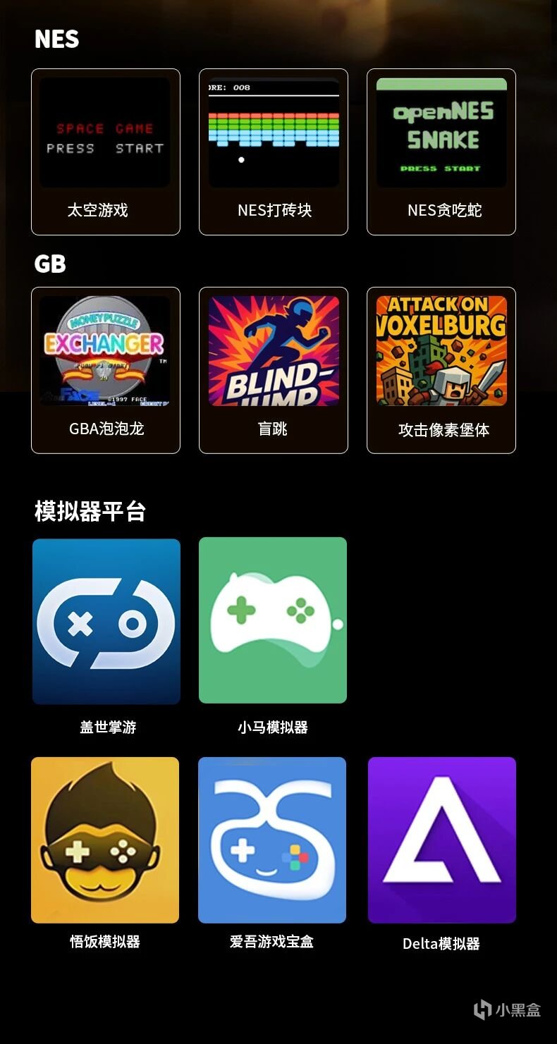 同時支持GAME BOY、GBA、NES、SNES等經典平臺的遊戲,以及兼容其他模擬器,暢玩復古遊戲。