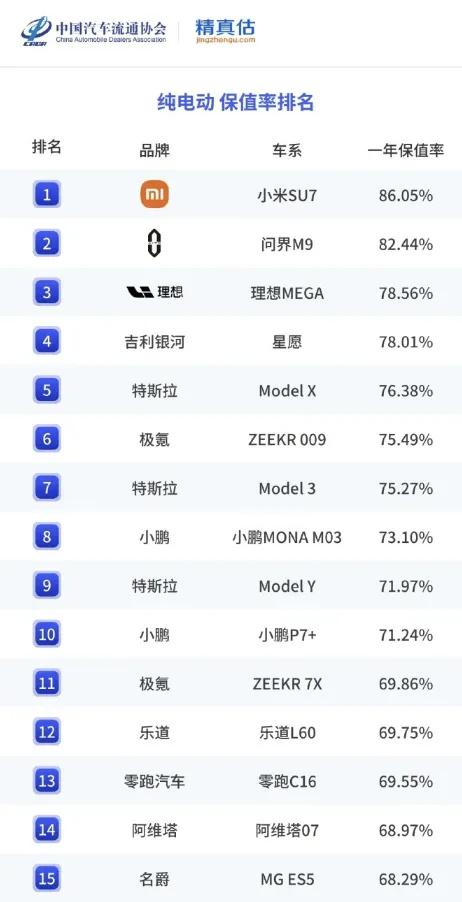 1月27日,雷軍發文:“中國汽車流通協會和精真估 正式發佈《2025年度中國汽車保值率報告》,2025年度純電動車型中,一年保值率,小米SU7獲2025年度保值率第一名。感謝每一位用戶的認可,感謝一路同行。”