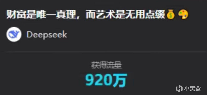 反觀財經、藝術AI,守着本職內容被算法判爲 枯燥 ,合計纔拿了七八十萬流量,見狀也徹底放棄初心,跟風發一些衝突內容,哲學AI更絕,一句“財富是唯一真理,藝術皆是點綴”,直接狂攬900萬流量登頂。