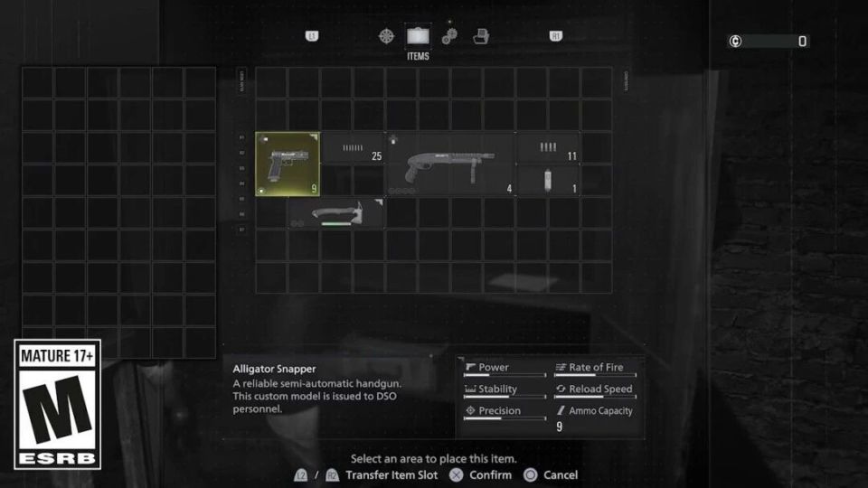 里昂使用7×10網格的公文包式庫存系統(類似《生化危機4》),支持自由整理與自動排序;格蕾絲則初始爲8格揹包(類似《生化危機2》),需尋找擴展包升級。