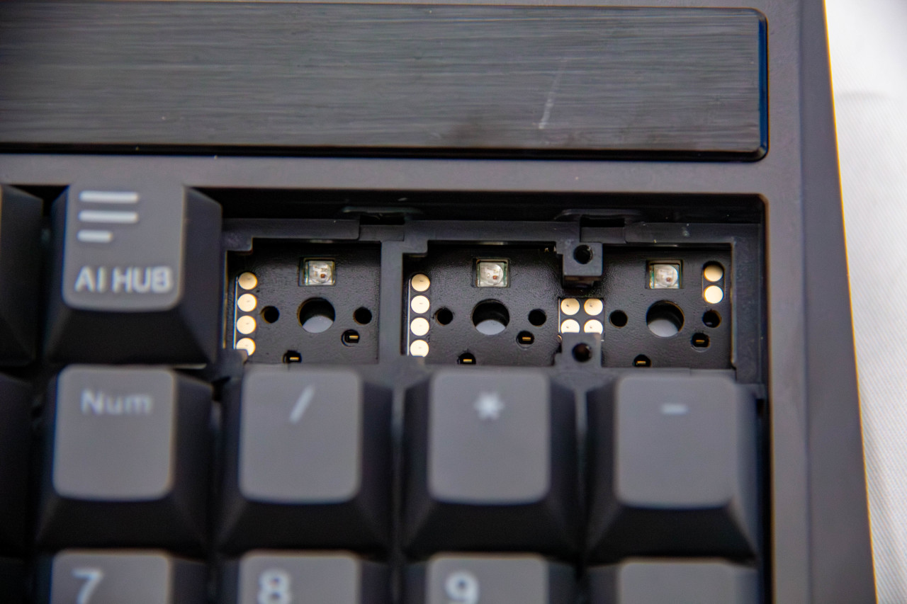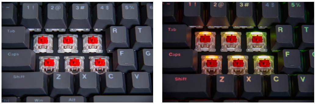 軸體方面,搭載Cherry新的 MX Lumin流明軸(我這把是紅軸),自帶獨立導光柱,燈光效果比傳統MX軸好太多,而且軸心穩定性也提升了。