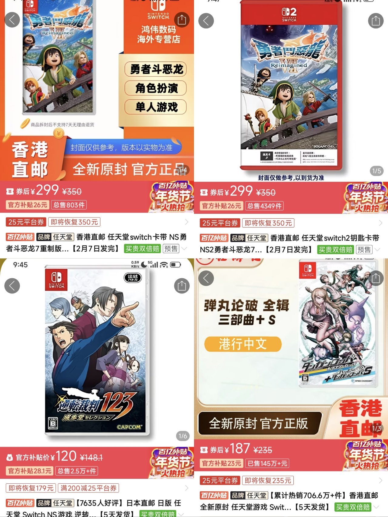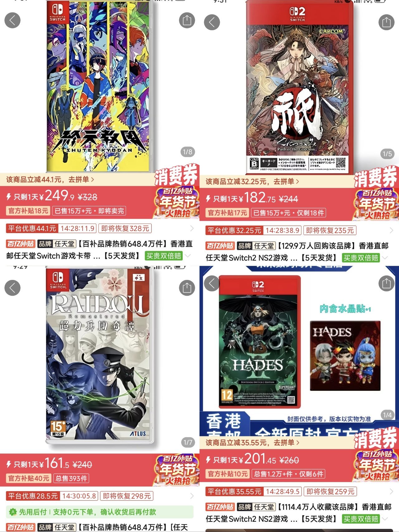 【1.28】今日switch卡帶好價(實時更新)