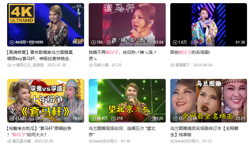 这或许就是让乌兰图雅在2026再度成为互联网热梗,甚至可能有些风评反转的原因吧。她身为正经的歌手,自带一堆容易传播的抽象画面,又主动贴近网友玩梗,更是顺应着解构权威的最大爽点,将原本高高在上、只存在于晚会中的歌手形象,变成了一个搞抽象的谐星。