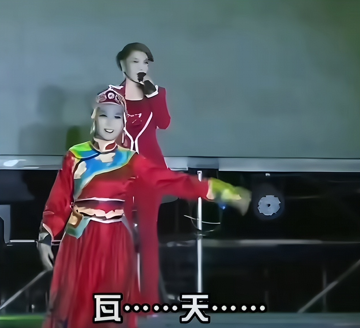 甚至,乌兰图雅的口胡还能传染给其他人。在他参与的各种演出中,主持人便会时不时地遭遇侵蚀,无论如何都无法念对乌兰图雅的名字,只能将这四个字疯狂排列组合,整出“乌图雅”“乌拉头雅”“乌雅图兰”“乌兰托巴”“乌拉那拉”等各种称呼。而最离谱的,可能还是有主持人渲染半天气氛,结果压根没念乌兰图雅名字的场面:“有请蒙zu gu著名歌唱家(停顿)(邪恶一笑)套——马——杆(神秘)”