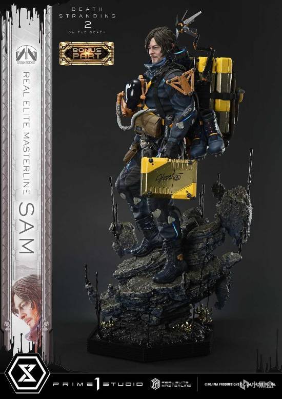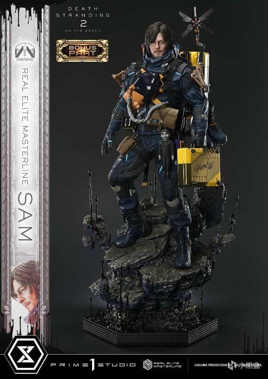 该手办采用1/3大比例打造,极致还原主角山姆的坚毅气质,面部精准复刻诺曼·瑞杜斯的神态细节,眼周皱纹、发丝纹理均以超写实工艺呈现。装备方面,奥卓德克扫描仪、育婴舱等经典道具一应俱全,部分组件搭载LED发光功能,底座嵌入焦油与 chiral 晶体元素,还原游戏独特视觉风格。