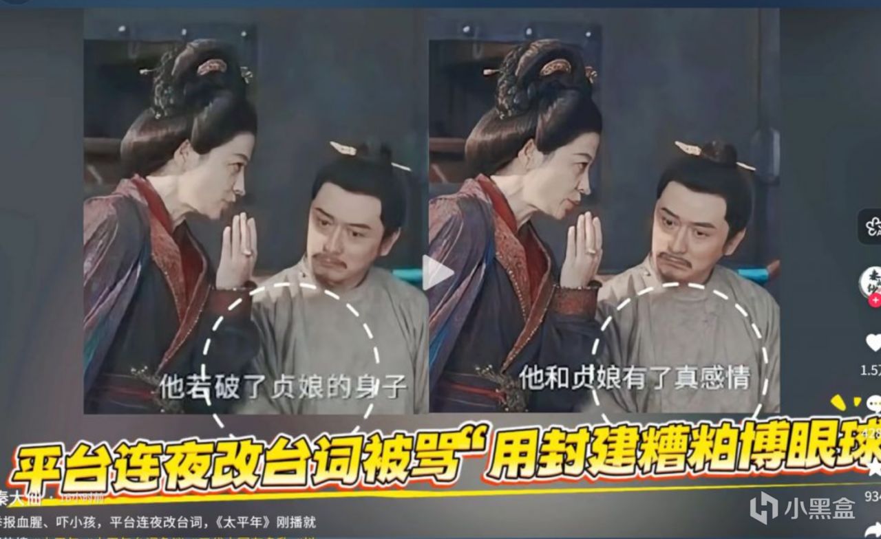 好处说完了,那坏处呢,还真有,剧中因为一个台词,因不符合当代人的价值观,被集体吐槽,最终,疑似某绿色平台,迫于舆论压力,最终推卸,率先呼应呼声,改变台词,符合了当代人的价值观。