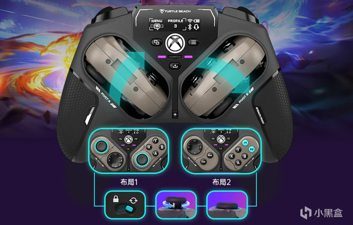 雖然國產手柄廠商總能整出讓人眼前一亮/黑的創意,但國外手柄廠商在模塊化手柄方面還是走在了國產手柄前面,比如大名鼎鼎的Astro C40 TR,這款在19年上架的手柄,它的十字鍵和兩個搖桿都能自由拆卸且十字鍵和左搖桿佈局可以切換,而且比較特別的是它還是索尼授權的第一款非對稱式手柄。