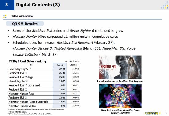 近日,卡普空公布了截至2025年12月31日的最新财报数据,旗下多款经典游戏系列销量再创新高。