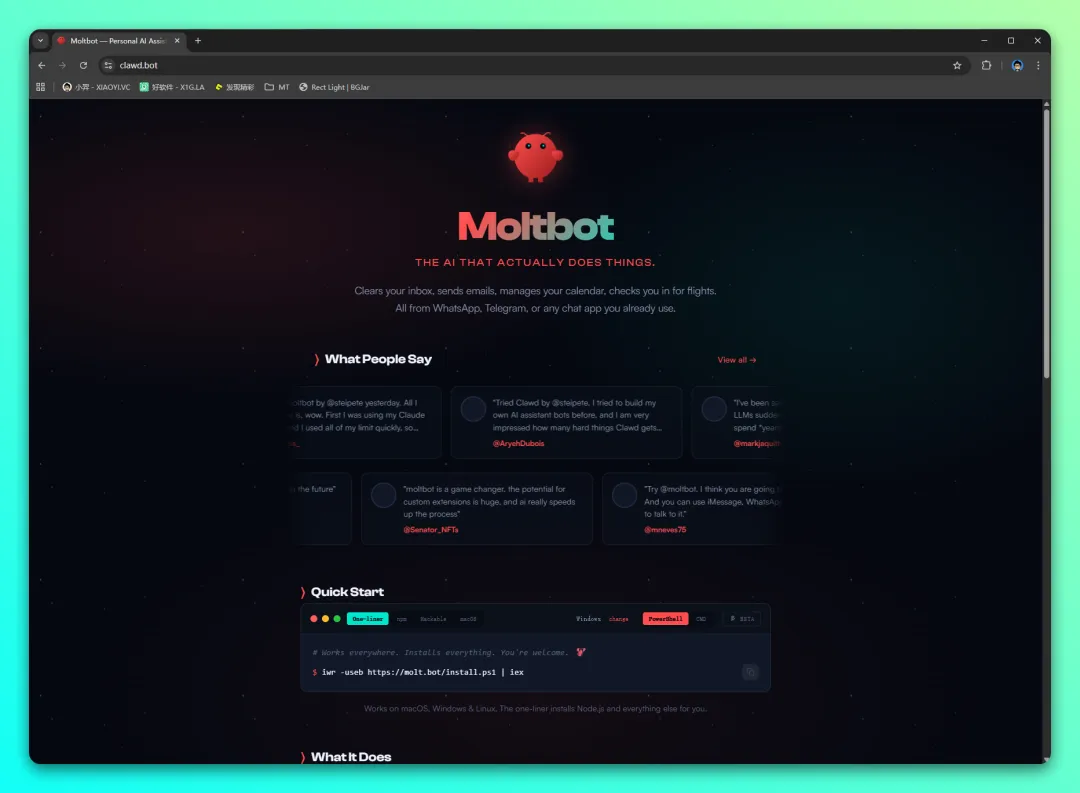 简单来说,我们能用鼠标、键盘完成的电脑操作「Moltbot」基本都能替我们完成,相当于一个24小时不休息的“数字分身”,核心用途集中在这几个常见场景,通俗易懂好理解: