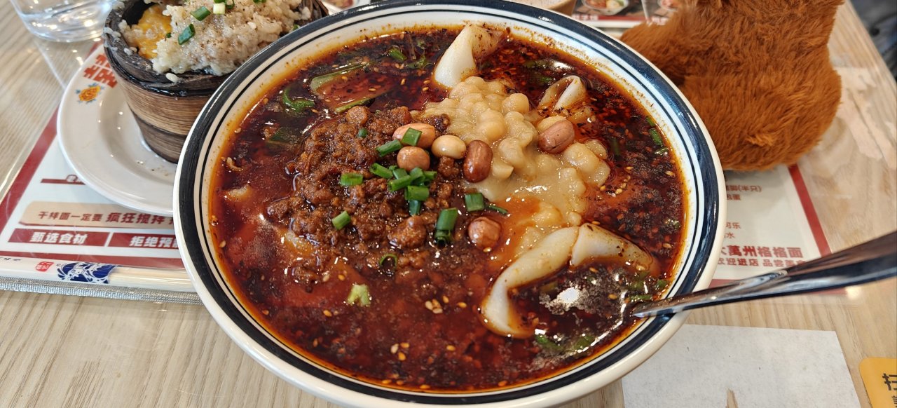 這家的格格也就是最爲經典的三樣,粉蒸羊肉、排骨和肥腸,另外也賣面和抄手、以及一些蓋飯。女老闆是當地人,我們喫飯的過程中就有顧客在用重慶話和老闆上演老鄉見老鄉。