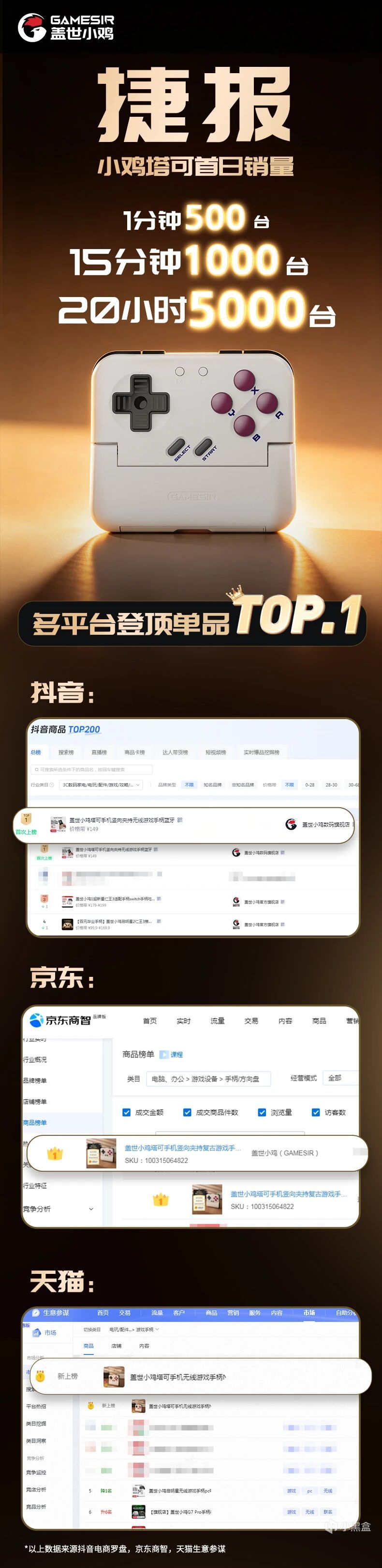 上市當晚就賣出3000臺,20小時首批5000臺已售罄,不僅刷新了我們手機手柄品類的歷史銷售紀錄,更在各大電商平臺強勢登頂熱銷榜首。