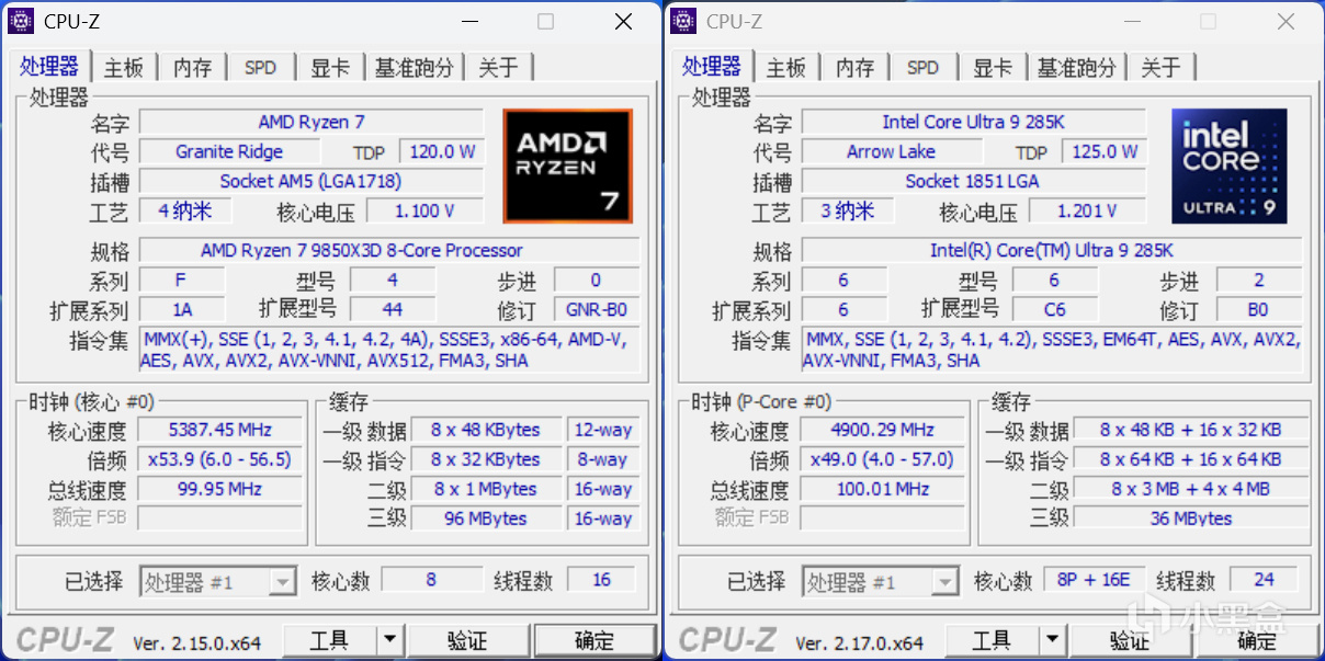 没有对比就没有伤害,这就给锐龙7 9850X3D找来了强力对手——Intel Core Ultra 9 285K,锐龙7 9850X3D设置开启PBO ENABLE档,而Intel这边则是在BIOS内开启Unlimited Settings以便完全解锁功耗,为了迎合其高频内存特性,测试时搭配的是DDR5 8000C38 16GB*2套条。