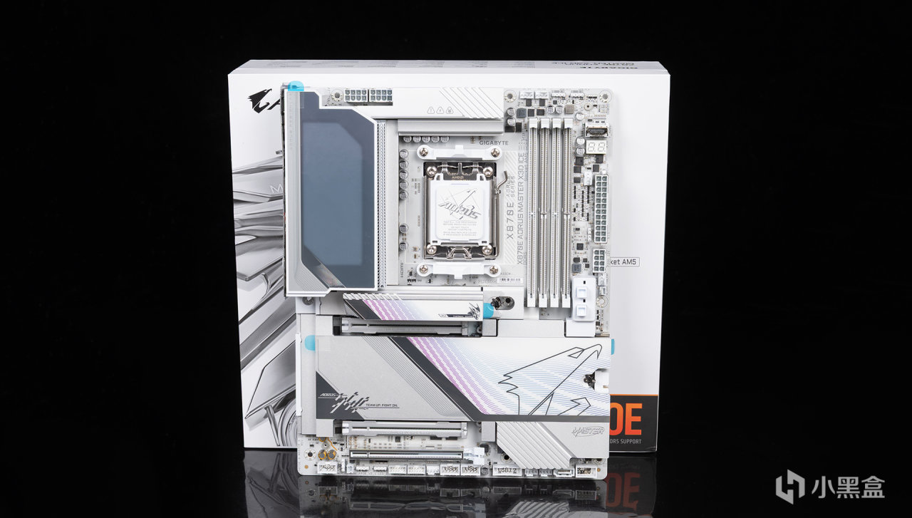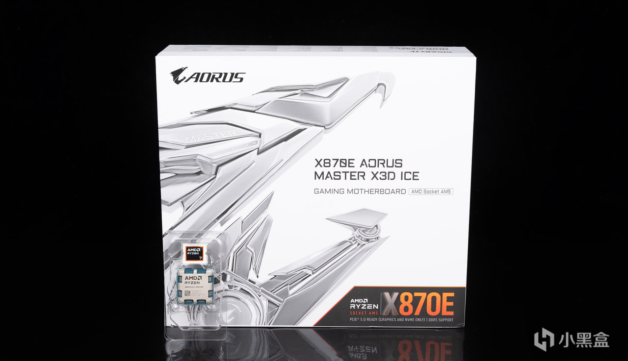 锐龙7 9850X3D作为旗舰游戏处理器,当然要搭配旗舰主板才有牌面——技嘉X870E AORUS MASTER X3D ICE超级冰雕,整体纯白配色做工用料出色,支持X3D Turbo模式2.0,主板具体详情卖点,可自行跳转文末慢慢了解。