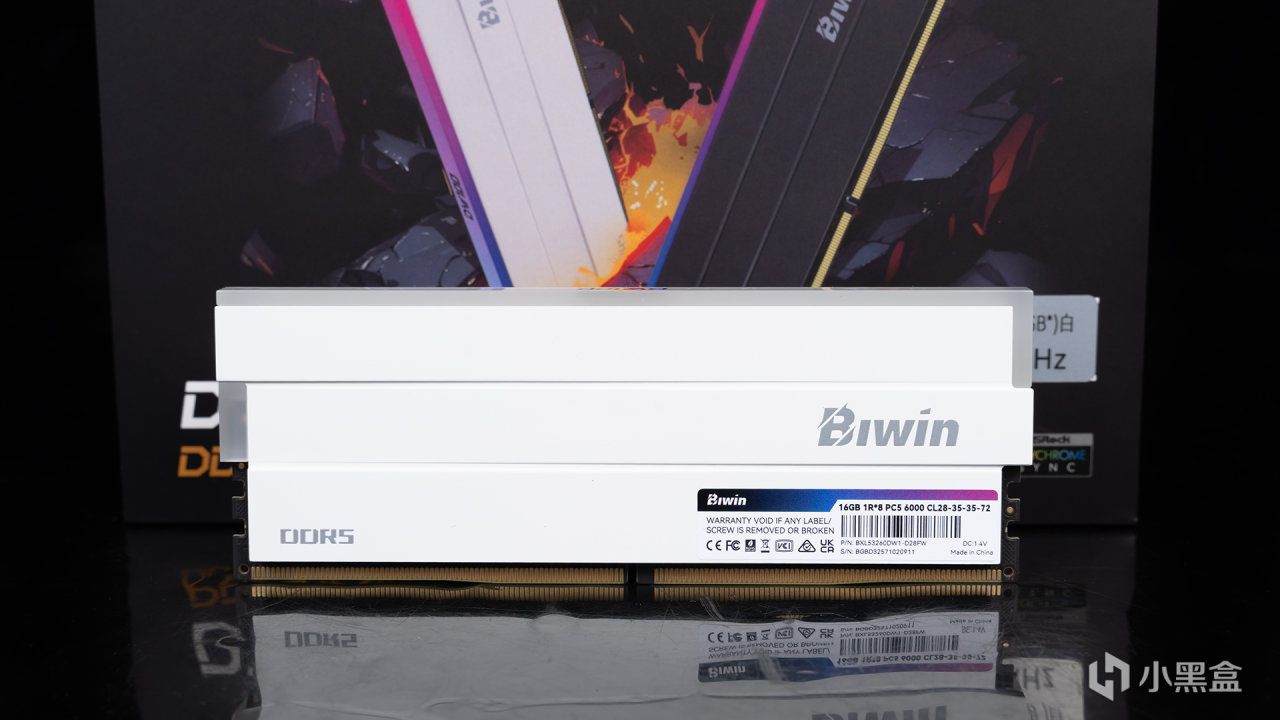 佰维DW100 RGB DDR5 6000C28配备2mm铝合金装甲,表面采用了电泳工艺,上手触感细腻,荣获多项国际大奖认证。它还采用了立体交叉错位结构,形成三条微风通道有助于空气流通,内置高导热硅胶,整体散热性能更为出色。