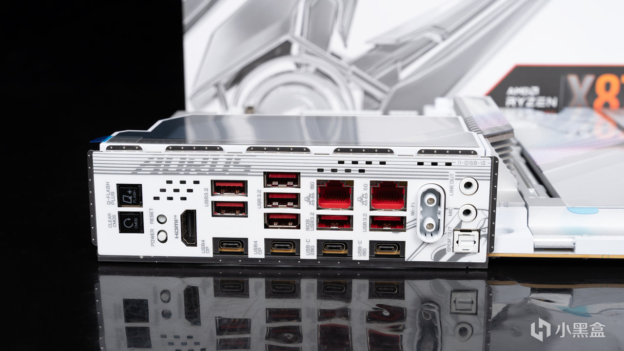 I/O方面,技嘉X870E超级冰雕提供了多达11组USB接口,包括7组USB 3.2 GEN 2 Type-A、2组USB 4 Type-C(支持DP 1.4和HDR输出4K@240HZ)、1组USB 3.2 GEN 2 Type-C和1组USB 3.2 GEN 2X2。其他配置方面,还包括支持快易拆的WiFi 7无线网络、5GbE & 10GbE有线网口、QFLASH功能按钮等。