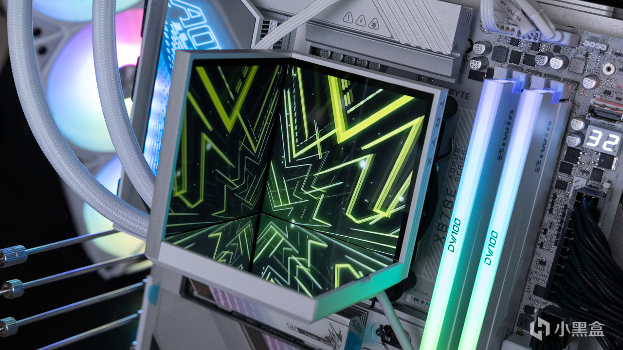CPU散热器则是TRYX创氪星系STAGE影域360水冷,外观上最大的亮点是采用了双4英寸IPS真彩大屏——打造称独特的视觉空间,舞台底部提供镜面和雾面两种材质,满足不同玩家的需求,舞台是磁吸固定的,免工具方便切换。
