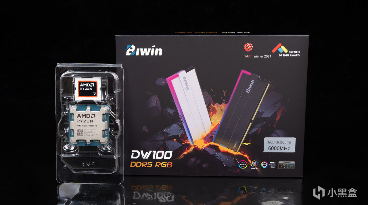 锐龙9000系列的内存甜点频率还是DDR5 6000MHz,这次就准备了来自佰维的DW100 RGB DDR5 6000C28 16GB*2套条进行搭配测试,AMD专属调优,C28超低时序,能最大程度发挥锐龙7 9850X3D的性能实力。