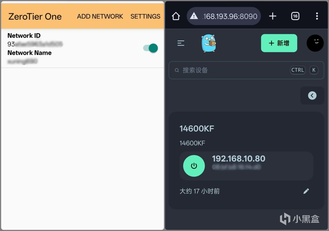 這時候就可以配合zerotier one之類的虛擬組網工具或者DDNS域名來遠程訪問NAS了,比如我在手機和NAS上都安裝zerotier one後,就可以遠程從外網連接到NAS,然後通過NAS喚醒電腦了: