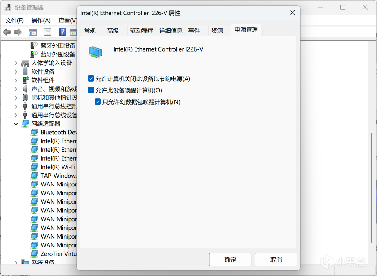 進入Windows系統後,我們在設備管理器中找到有線網卡,確定屬性頁面最後的電源管理部分,已經啓用了“允許此設備喚醒計算機”。