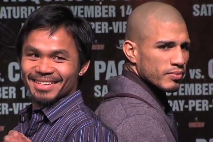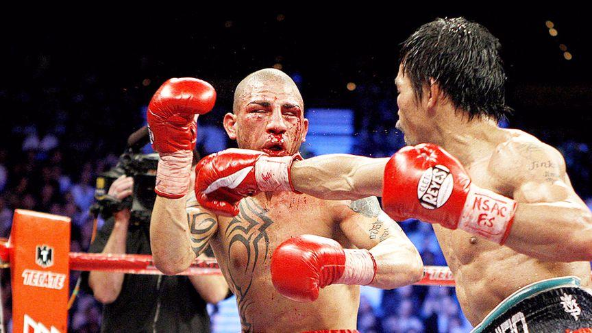 同年下半年,帕奎奥继续升重至次中量级,迎战波多黎各“战神”米格尔·库托,这位铁血硬汉被帕奎奥打得面目全非、血流不止。谁也没想到,帕奎奥升重之后,拳头的威力不仅没有减弱,反而更快、更重,让对手根本来不及反应,既防不住,也躲不开。