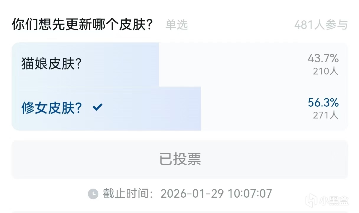 你们确定是要先更新修女皮肤吗?反正我看投票结果是这样的噢~