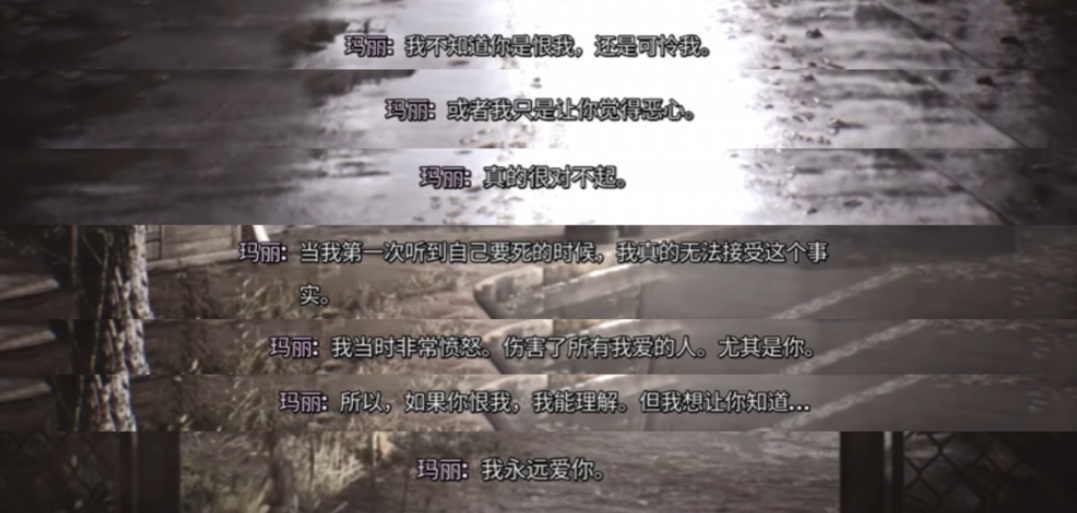 那么,游戏叙事中“爱恨是两面”的美学,也就完全失去了意义,玩家也完全没必要去争最后“玛丽原谅詹姆斯”的画面,到底是不是发生过的事情。