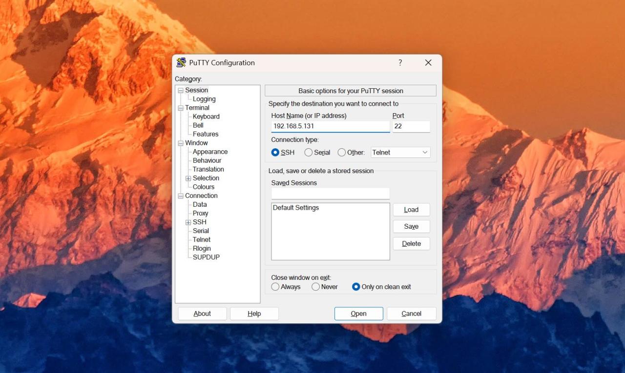 使用PUTTY進行SSH連接。